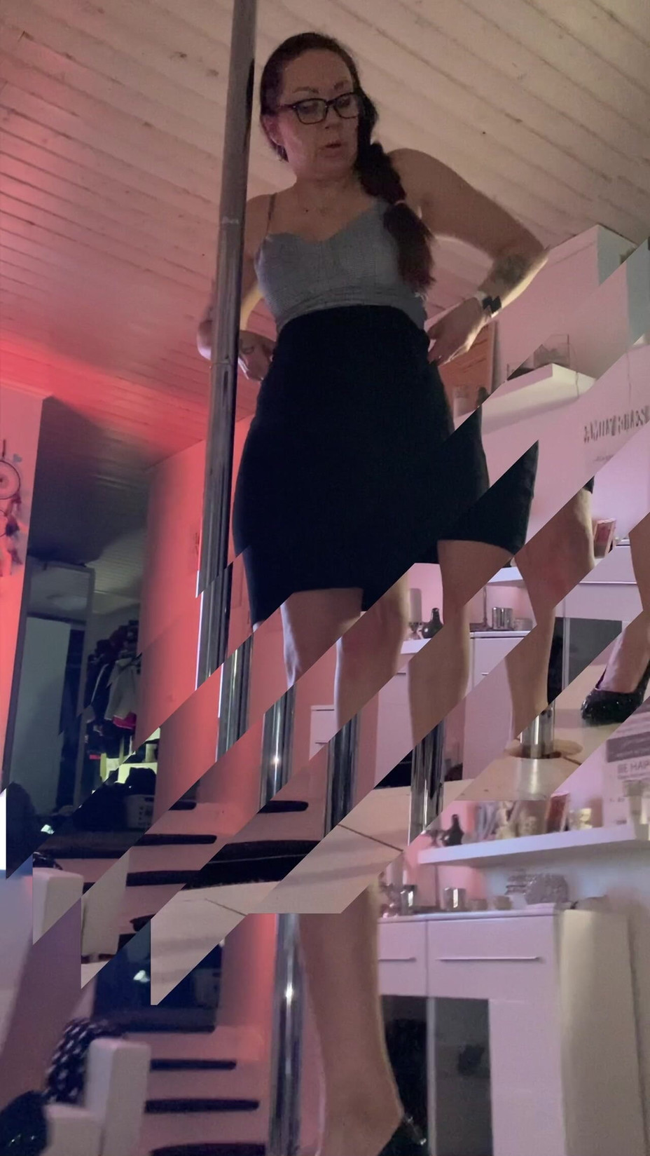 I am playing a naughty teacher. Who just called for a lesson? She got very horny about her younger students in college. And suddenly she started to rolling around the stripping pole.